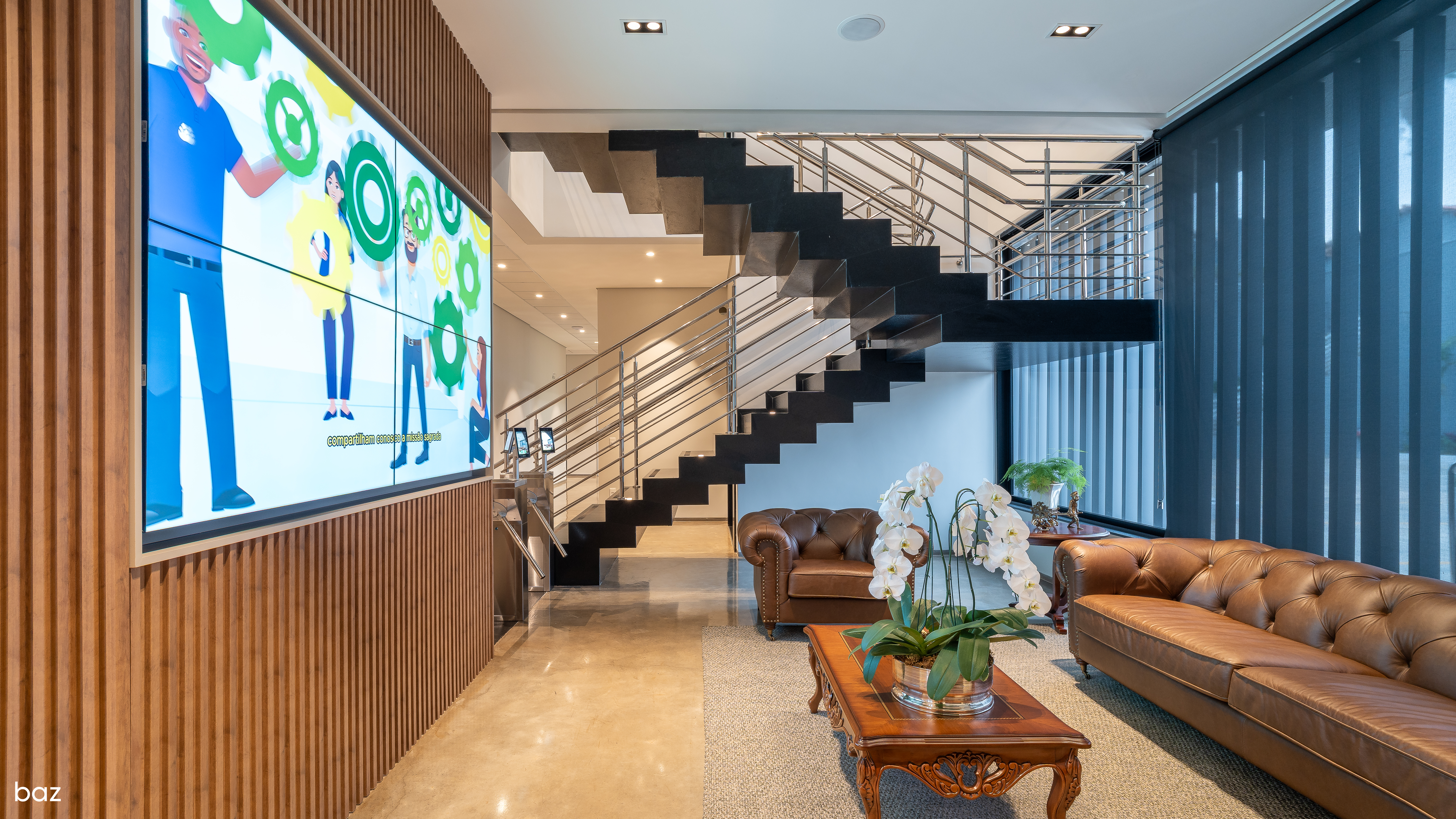 • Carpete – aplicado para reduzir a reverberação sonora, proporcionar conforto ao pisar e elevar o padrão estético dos ambientes corporativos.